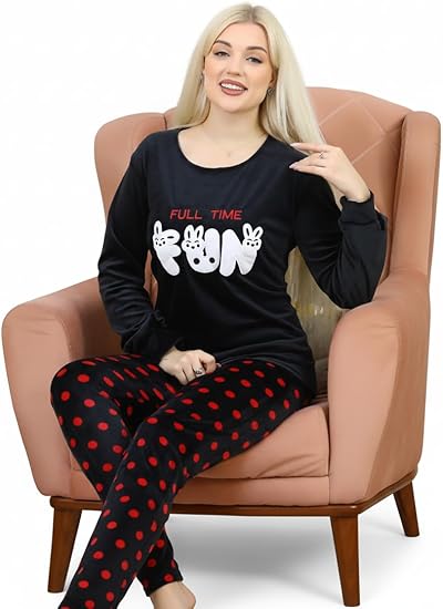 بيجامة شتوية نسائية قطيفة هايدي (دفاية قطعتين)